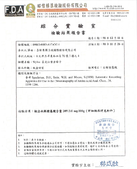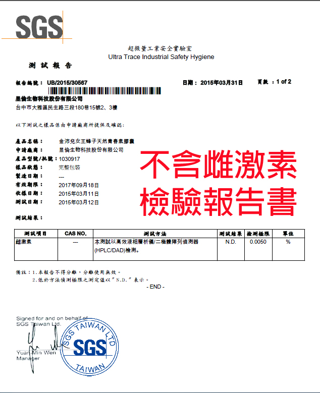 超強女王蜂 高達20913係數 (以下為 檢驗結果報告書)