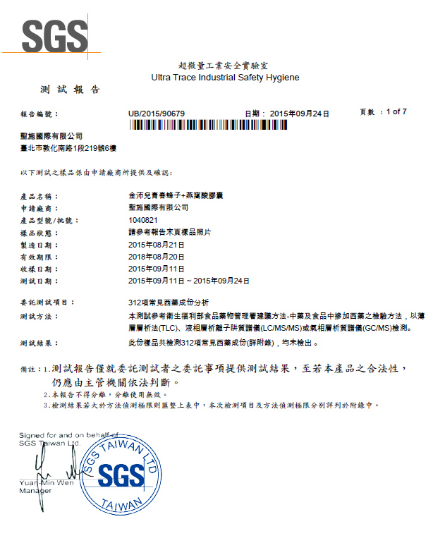 經SGS測試報告   不含312種西藥成份  不含雌激素