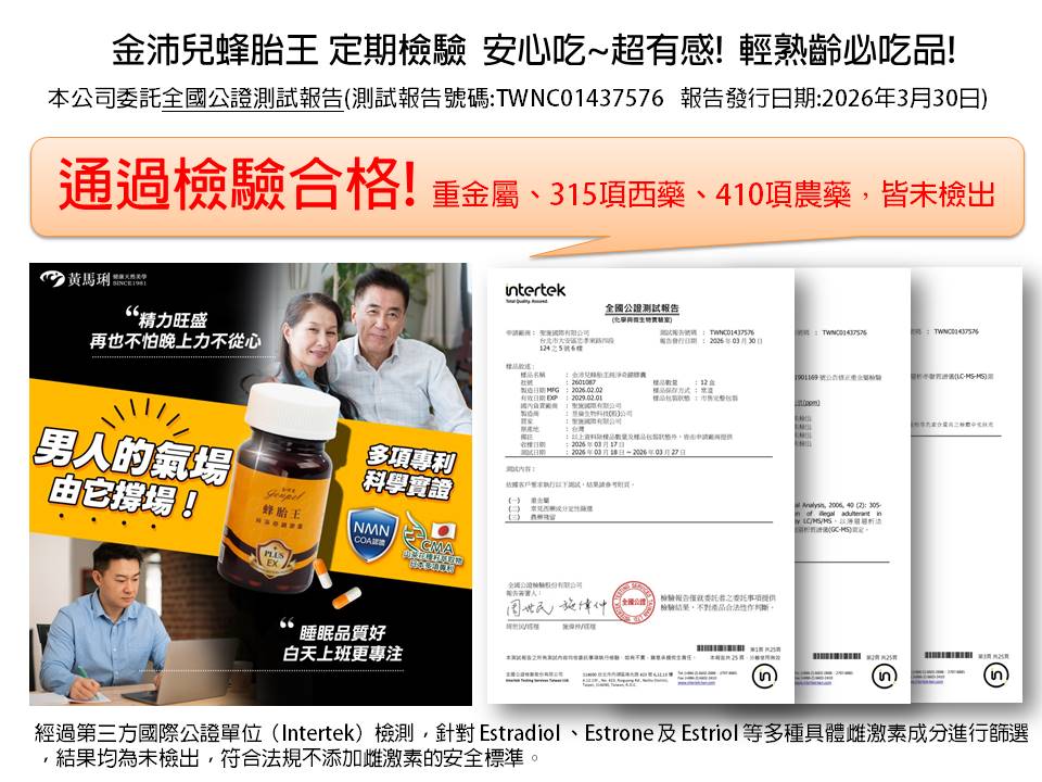 金沛兒青春蜂子及金沛兒蜂胎王 檢驗合格